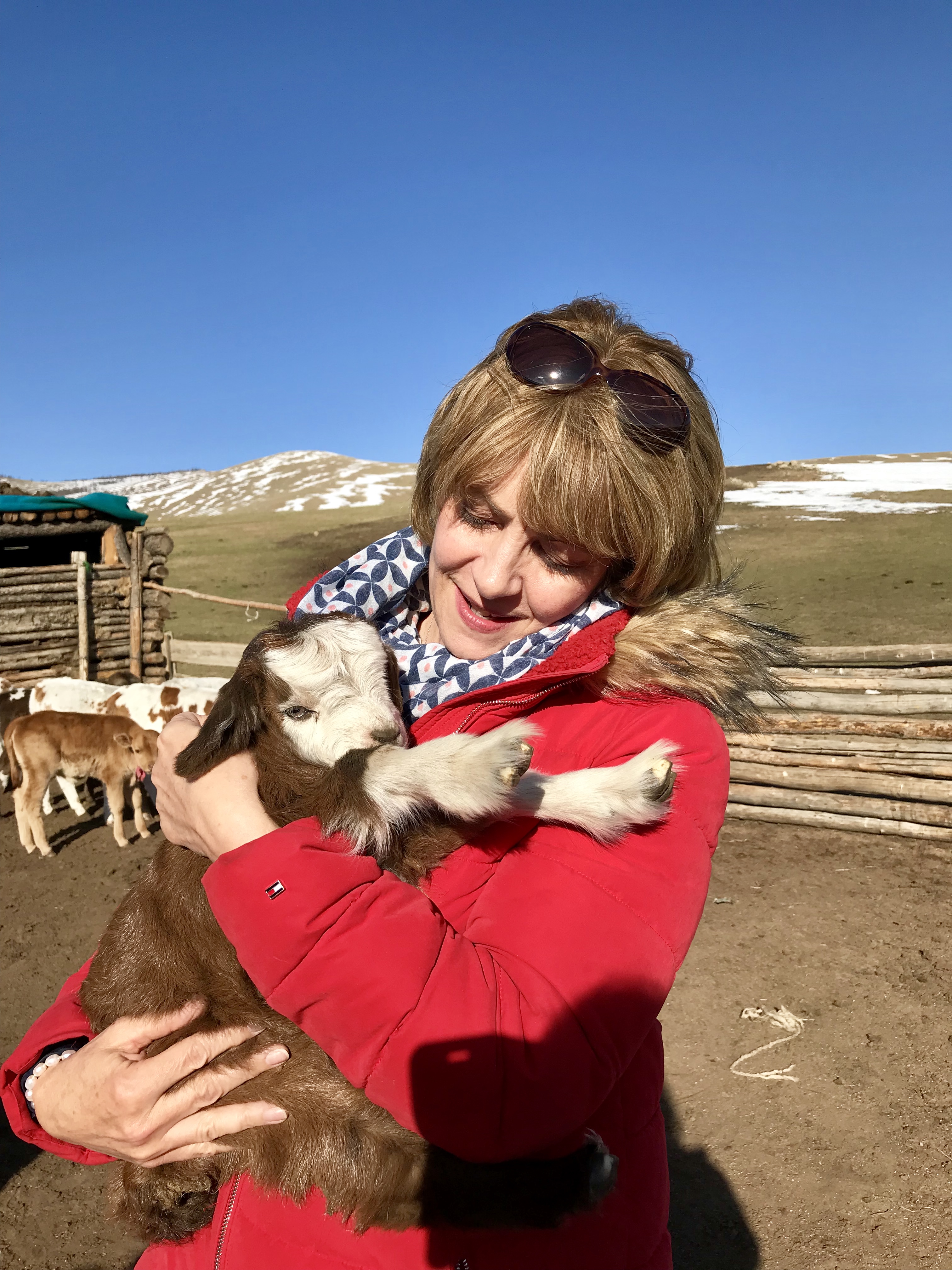 Being inside a ger is a treat! It is much larger on the inside than it appears from the outside. Beautifully painted wooden furniture line the walls, a roof opens and closes according to the need for heat and ventilation, a cooking stove sits in the centre and colourful blankets are piled on the beds that double as comfy sofas. Outside we were taken on a tour of the animal stalls, given kid goats to hold and invited to ride their horse. That same day we also got to ride a camel and hold an eagle and a vulture! More highlights for sure!